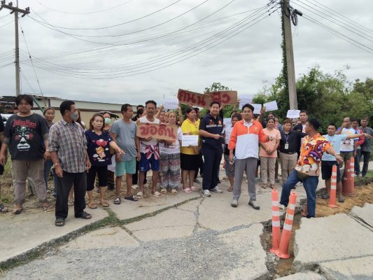 ศูนย์ดำรงค์ธรรมจังหวัดนครปฐม ประสานหลายหน่วยงานแก้ปัญหาถนนทรุดยาว 800 เมตรชาวบ้านเดือดร้อน 200 ครัวเรือน