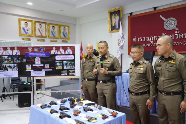 ผลการปฏิบัติหน้าที่ของตำรวจภูธรจังหวัดนครปฐม ที่ผ่านมาสามารถ จับกุมอาวุธปืน เดือน ตุลาคม 2568 จับกุมผู้ต้องหาทั้งสิ้น 47 ราย อาวุธปืนของกลางทั้งหมด 47 กระบอก – อาวุธปืนมีทะเบียน 32 กระบอก – อาวุธปืนไม่มีทะเบียน 15 กระบอก -เครื่องกระสุนปืน จำนวน 213 นัด และผลการจับกุมคดียาเสพติดภาพรวม เดือน ตุลาคม 2568จับกุมผู้ต้องหาทั้งสิ้น 266 ราย 271 คน พร้อมของกลาง 1.ยาบ้า จำนวน 9,774 เม็ด 2.ไอซ์ 30.43 กิโลกรัม 3.เคตามีน 3.54 กรัม 4.เฮโรอีน 23.31 กรัม จับกุมคดีสมคบจำนวน 3 คดี ยึดอายัดทรัพย์สินมูลค่า 7,297,491 บาท