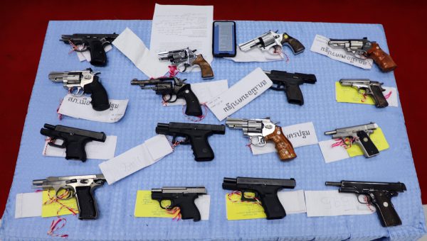 จากการตรวจค้นพบอาวุธปืนขนาด 9 มม.ยี่ห้อ FN หมายเลขทะเบียนปืน กท 5246405 จำนวน 1 กระบอก ซองกระสุนปืนขนาด 9 มม.จำนวน 1 อัน เครื่องกระสุนปืนขนาด 9 มม.จำนวน 7 นัด บรรจุอยู่ในซองกระสุน ซองพกหนังสีดำจำนวน 1 อัน ทางเจ้าหน้าที่ตำรวจจึงได้ทำการตรวจยึดไว้เป็นของกลาง