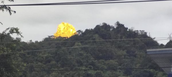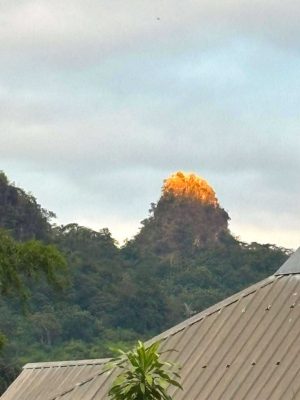 กาญจนบุรี – สุดแปลกตาบนท้องฟ้าเหลืองอร่าม นักท่องเที่ยวเก็บภาพ ยอดเขาแหลม อำเภอทองผาภูมิ กลายเป็นสีทอง