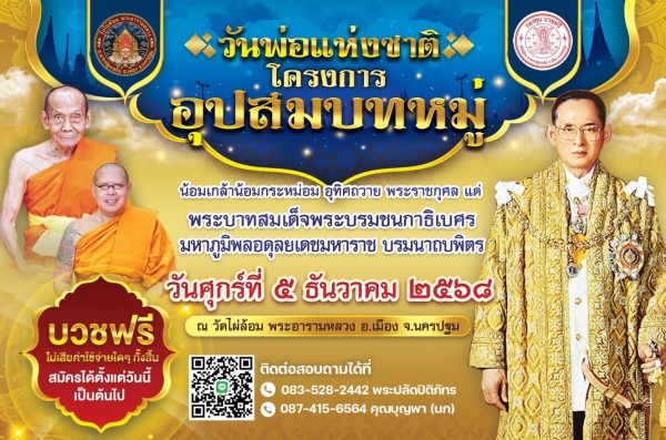 ในการนี้ วัดไผ่ล้อมพระอารามหลวง จังหวัดนครปฐม ได้จัดโครงการอุปสมบทหมู่ น้อมเกล้าน้อมกระหม่อม อุทิศถวาย พระราชกุศล แด่ พระบาทสมเด็จพระบรมชนกาธิเบศร มหาภูมิพลอดุลยเดชมหาราช บรมนาถบพิตร ผู้ทรงได้รับการขนานนามว่า เป็นพ่อหลวงของปวงชนชาวไทย โดยมีกำหนดการในวันศุกร์ที่ 5 ธันวาคม 2568 ณ วัดไผ่ล้อม พระอารามหลวง อ.เมือง จ.นครปฐม ทั้งนี้ผู้ที่ประสงค์เข้าร่วมโครงการ จะเป็นการบวชฟรี ไม่มีค่าใช้จ่ายใดใด ทั้งสิ้น ซึ่งสามารถสมัครเข้าร่วมโครงการได้ตั้งแต่บัดนี้