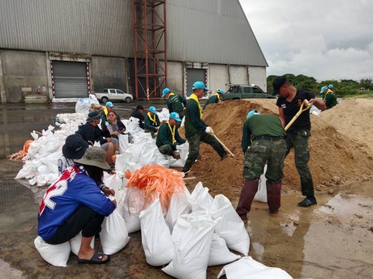 ส่วนที่จังหวัดอ่างทอง อำเภอป่าโมก สั่งการให้ เจ้าหน้าที่ทหารสังกัด ป.1 พัน.31 รอ. และ ป.1 พัน.11 รอ. สนับสนุนการเสริมแนวกระสอบทรายและ อุดรอยรั่วคันกั้นน้ำ หมู่ 2 ต.ป่าโมก พร้อมเครื่องจักรหนักเพื่อป้องกันน้ำทะลักเข้าชุมชน