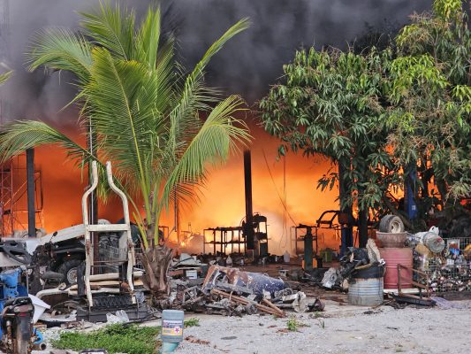 เพลิงไหม้อู่ซ่อมรถยนต์ไฟฟ้า(รถกอฟล์)วอดรับอรุณ