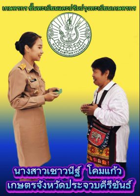 สำนักงานเกษตรจังหวัดประจวบคีรีขันธ์ นำโดย นางสาวเชาวนีฐ์ โคมแก้ว เกษตรจังหวัดประจวบคีรีขันธ์ ลงพื้นที่เชิญชวนเกษตรกรทั่วไปและเกษตรกรผู้ปลูกข้าวนาปี ขึ้นทะเบียนและปรับปรุงทะเบียนเกษตรกร