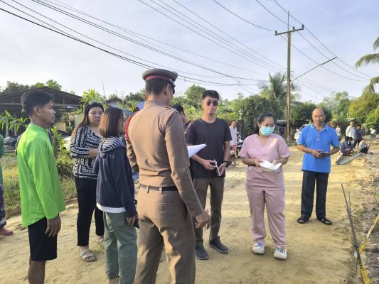 จากการบอกเล่าของนายชั้น เชือกงูเหลือม (สวมเสื้อสีเขียวแขนยาว) เป็นหลานของผู้เสียชีวิตได้เล่าว่า นายบุญลือ ตังกวย และลูกสาวได้เดินออกจากบ้านที่กำลังทำถนนใหม่เข้าซอยบ้านหนองไอกล่อมจะไปบ้านหลานสาวซึ่งห่างกันประมาณ 200 เมตรเพื่อไปกินข้าวและช่วยกันแพ็คลูกมะยงชิด เมื่อถึงเวลา 22.30 น.ลูกสาวผู้เสียชีวิตได้ขอกลับบ้านก่อน ส่วนผู้เสียชีวิตยังไม่กลับบ้านช่วยแพ็คมะยงชิด ลูกสาวเห็นว่าดึกมากแล้วพ่อยังไม่กลับมาบ้านจึงได้ออกตามหาแต่ก็หาไม่พบเนื่องจากในซอยมืด และช่วงเช้าของวันที่ 20 กุมภาพันธ์ 2569 วันนี้ได้มีชาวบ้านได้มาเดินออกกำลังพบไฟฉายหล่น และมีร่องรอยปัสสาวะอยู่ที่ข้างทาง ได้มองไปที่บ่อน้ำข้างถนนจึงพบศพผู้เสียขีวิตคาดว่าหลังจากทานข้าวและช่วยแพ็คมะยงชิดแล้ว จะเดินกลับบ้านเกิดปวดปัสวะจึงได้ปัสวะข้างทางที่กำลังทำถนนใหม่ดินยังถมไม่แน่นเกิดพลาดไหลลงบ่อข้างทางทำให้จมน้ำเสียชีวิตดังกล่าว