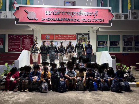 วันนี้ 9 มี.ค.69 พันตำรวจเอกสันติ พิทักษ์สกุล ผู้กำกับสภ.สังขละบุรี ขอกำลังร่วมหน่วยงานความมั่นคง ทหารเฉพาะกิจลาดหญ้า อส. ปกครองอำเภอสังขละบุรี ตม. กาญจนบุรี ตชด.ที่ 134 ได้รับแจ้งว่ามีบุคคลต่างด้าว ลักลอบหลบหนีเข้าเมือง เพื่อที่จะเข้าไปทำงานในพื้นที่ชั้นในของประเทศ จึงร่วมกันออกตรวจพบบุคคลต่างด้าวหลบหนีเข้าเมืองทั้งชายหญิง 45 คน พฤติการณ์จับกุมขณะเจ้าหน้าที่ชุดจับกุมออกปฏิบัติหน้าที่ช่องทางธรรมชาติบริเวณ หลังวัดน้ำเกิก หมู่ที่ 8 ตำบลหนองลู อำเภอสังขละบุรี จังหวัดกาญจนบุรี พบบุคคลเดินอยู่ชายป่าริมถนนหน้าร้านกาแฟ เจ้าหน้าที่ชุดจับกุมได้ตรวจสอบพบสอบถามแล้วขอตรวจสอบบัตรประจำตัวเอกสารการอนุญาตให้อยู่ในราชอาณาจักรพบว่า ผู้ต้องหาไม่สามารถแสดงบัตรประจำตัวบุคคลไม่มีสัญชาติไทย ไม่สามารถพูดและฟังภาษาไทยได้ เจ้าหน้าที่จึงได้จับกุมทั้งหมด