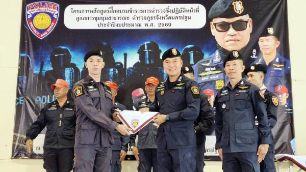 วันนี้ 11 มีนาคม 256 ที่บริเวณอาคารอเนกประสงค์ กองร้อยบังคับการและบริการกองบังคับการกองอาสารักษาดินแดนจังหวัดนครปฐม ตำบลถนนขาด อำเภอเมืองนครปฐม จังหวัดนครปฐม พล.ต.ต.พิทักษ์ อุปพงษ์ ผู้บังคับการตำรวจภูธรจังหวัดนครปฐม ประธานพิธีเปิดการฝึกอบรมโครงการฝึกทบทวนข้าราชการตำรวจซึ่งปฏิบัติหน้าที่ดูแลการชุมนุมสาธารณะประจำปีงบประมาณ พ.ศ.2569 ระหว่างวันที่ 11 – 13 มี.ค.69 โดยมีกองร้อยควบคุมฝูงชนกองร้อยที่ 1 จำนวน 170 นาย เข้ารับการฝึกทบทวนการปฏิบัติภารกิจดูแลการชุมนุมสาธารณะประท้วงของกลุ่มต่างๆให้เป็นไปด้วยความเรียบร้อย เพื่อเสริมสร้างความรู้ ความเข้าใจ และทบทวนแนวทางการปฏิบัติหน้าที่ของกำลังเจ้าหน้าที่ตำรวจให้เป็นไปตามกฎหมาย ระเบียบ และหลักสิทธิมนุษยชนที่เกี่ยวข้อง