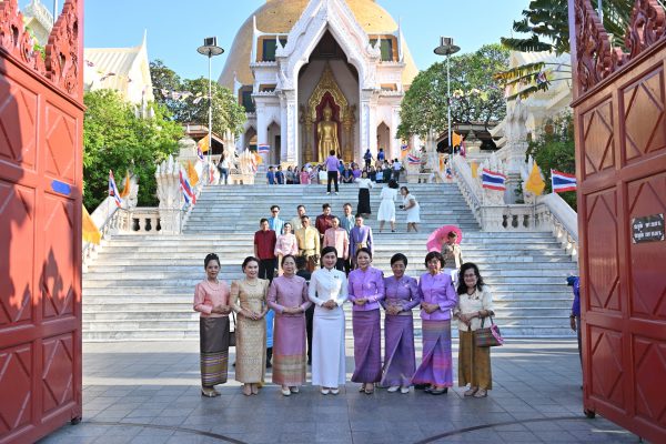วันที่ 2 เมษายน 2569 ที่บริเวณหน้าพระร่วงโรจนฤทธิ์ฯ องค์พระปฐมเจดีย์ อำเภอเมือง จังหวัดนครปฐม นางสาวอโรชา นันทมนตรี ผู้ว่าราชการจังหวัดนครปฐม พร้อมด้วย รองผู้ว่าราชการจังหวัด รองนายกเหล่ากาชาดจังหวัด นำหัวหน้าส่วนราชการ มีนางสาวสุกิจจา วานิชพงษ์พันธุ์ ประกันสังคมจังหวัดนครปฐม นายอำนาจ ประสงค์สุข นักวิชาการแรงงานชำนาญการ ข้าราชการ พนักงานประกันสังคมจังหวัดนครปฐมร่วมกิจกรรม “ภูมิใจแต่งไทยทั้งแผ่นดิน” เพื่อสร้างการมีส่วนร่วมให้ทุกภาคส่วนสวมใส่ชุดไทยพระราชนิยม ชุดไทยพระราชทาน ชุดผ้าไทย และชุดผ้าพื้นเมือง ตามอัตลักษณ์ของแต่ละท้องถิ่นอย่างเหมาะสมในชีวิตประจำวัน อันเป็นการอนุรักษ์ สืบสาน และต่อยอดมรดกภูมิปัญญาทาง วัฒนธรรมของชาติ พร้อมทั้งสร้างภาพลักษณ์ ความเป็นไทยสู่สายตานานาชาติ ประกอบกับกระทรวง วัฒนธรรมได้เสนอ “ชุดไทย : ความรู้ งานช่างฝีมือ และแนวปฏิบัติการแต่งกายชุดไทยประจำชาติ” ขึ้นทะเบียน เป็นมรดกภูมิปัญญาทางวัฒนธรรมที่จับต้องไม่ได้ของมนุษยชาติต่อองค์การการศึกษา วิทยาศาสตร์ และ วัฒนธรรมแห่งสหประชาชาติ (UNESCO) ซึ่งกำหนดพิจารณาในเดือนธันวาคม 2569 และเป็นการ เทิดพระเกียรติ สมเด็จพระนางเจ้าสิริกิติ์ พระบรมราชินีนาถ พระบรมราชชนนีพันปีหลวง ที่ทรงฟื้นฟูและ พัฒนาชุดไทยพระราชนิยมให้เป็นเอกลักษณ์ของชาติ ตลอดจนร่วมกันสืบสาน รักษา และต่อยอดอัตลักษณ์ไทย ให้ชุดไทย ไม่ใช่แค่เครื่องแต่งกาย แต่คือพลังของวัฒนธรรมที่บอกเล่าเรื่องราวของชาติ จากรากเหง้า สู่ความร่วมสมัย จากประเทศไทยสู่สายตาชาวโลก เพราะความเป็นไทย งดงามอย่างมีเอกลักษณ์