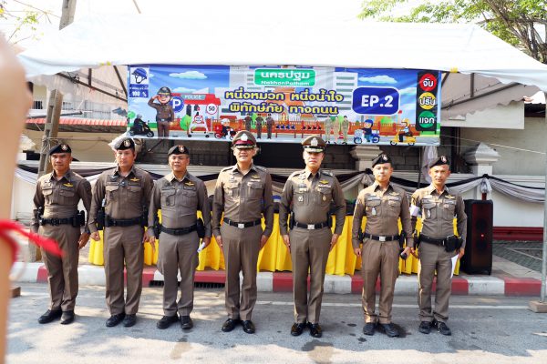 โดยมี พ.ต.อ.กฤษณัฐ วงษ์กล้าหาญ รอง ผบก.ภ.จว.นครปฐม พ.ต.อ.เทิดเกียรติ รักพานิชมณี รอง ผบก.ภ.จว.นครปฐม พ.ต.อ.พงษ์ศักดิ์ คำปาเชื้อ รอง ผบก.ภ.จว.นครปฐม พ.ต.อ.อชิรวัตติ์ ถาวรเจริญวัฒน์ ผกก.สภ.เมืองนครปฐม พ.ต.อ.เลอศักดิ์ ตุมรสุนทร ผกก.สภ.นครชัยศรี พ.ต.อ.ทรงวุฒิ เจริญวิชยเดช ผกก.สภ.สามพราน พ.ต.อ.ปราโมทย์ โพธิ์พันธุ์ ผกก.สภ.กำแพงแสน พ.ต.อ.ยงลิต ศุภผล ผกก.สภ.ดอนตูม พ.ต.อ.จุลภณ มีชำนาญ ผกก.สภ.โพธิ์แก้ว พ.ต.อ.สถิตย์ คงเนียม ผกก.สภ.โพรงมะเดื่อ พ.ต.อ.วิศิษฏ์ มินเสน ผกก.สภ.สามควายเผือก พ.ต.อ.นริสสร์ สังข์กระแสร์ ผกก.สภ.กระตีบ พ.ต.อ.มงคล พรหมเมศร์ ผกก.สภ.บางหลวง พ.ต.ท.อุทัย สุมาลัย รองผกก.ป.สภ.บางเลน ร่วมเปิดโครงการ ” นครปฐม 1 หมวก 1 น้ำใจ พิทักษ์ภัยทางถนน ” ระยะที่ 2 จับ ปรับ แจก ก่อนเข้าเทศกาลสงกรานต์ 2569