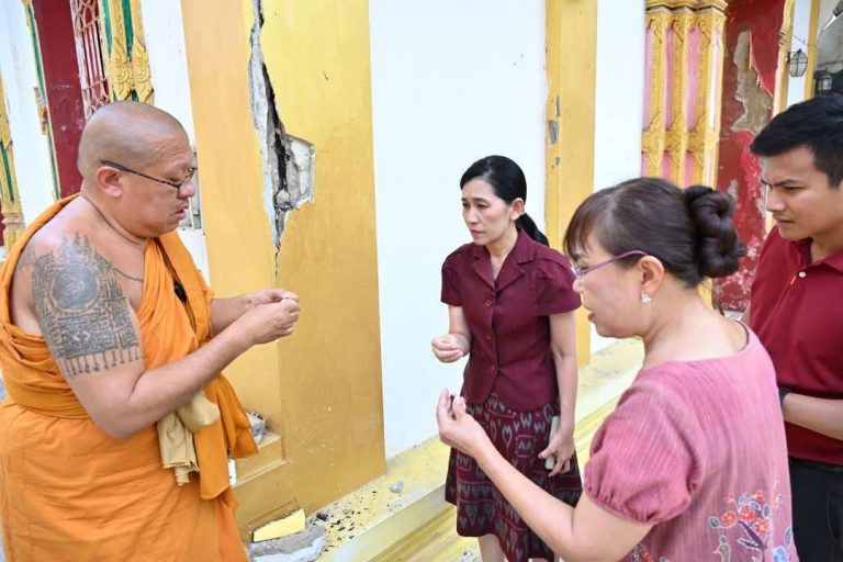 ตรวจสอบรอยร้าวอุโบสถหลังเก่าวัดไผ่ล้อม หลังแผ่นดินไหว