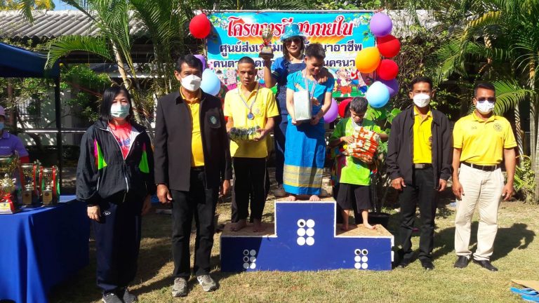 กิจกรรมแข่งขันกีฬาสี ศูนย์ส่งเสริมอาชีพและ พัฒนาอาชีพคนตาบอดพิการซ้ำซ้อนนครนายก