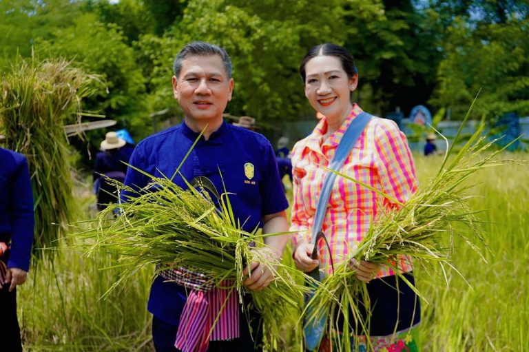 ผู้ว่าฯมุกดาหาร พาเกี่ยวข้าว นาหลังจวน เนื่องในวันฉัตรมงคล