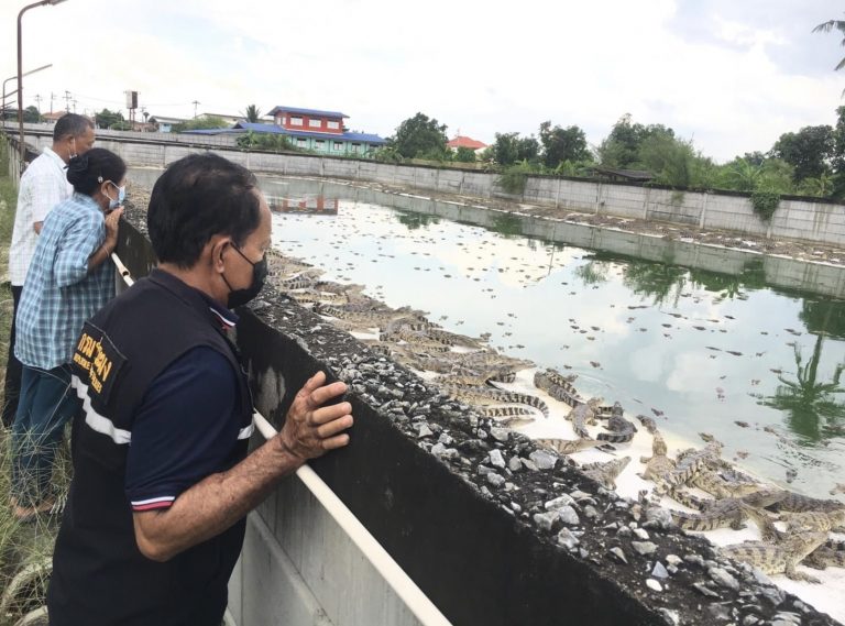 ประมงจังหวัดนครปฐมตรวจฟาร์มจระเข้เสี่ยงน้ำท่วม