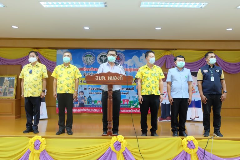 นายแพทย์สาธารณสุขจังหวัดปราจีนบุรีร่วมกับนายกองค์การบริหารส่วนจังหวัดปราจีนบุรี ลงพื้นที่เทศบาลเมืองหนองกี่ จัดการอบรมอาสาสมัครสาธารณสุขประจำหมู่บ้านใหม่/ทดแทน (หลักสูตร อสม.ใหม่) จังหวัดปราจีนบุรี ปี ๒๕๖๕ รุ่นที่ ๔