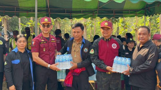 กาญจนบุรี – เราไม่ทอดทิ้งกันร่วมด้วยช่วยกัน ประธานสภาลมหายใจ มอบน้ำดื่มแก่เจ้าหน้าที่ดับไฟป่า และเขตห้ามล่า