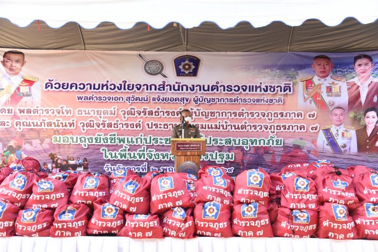เดอะโอ๋ !!! นำทีมแม่บ้านตำรวจแจกถุงยังชีพ บรรเทาความเดือดร้อนที่ตลาด ร.ศ.122 จว.นครปฐม