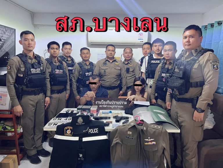 ตร.สภ.บางเลน รวบ ตี๋ หนองเสือ อ้างเป็นตำรวจยศ ร้อยเอก พร้อมอาวุธปืน ขนาด 9 มม.2 กระบอก เสื้อเกราะกันสุน 2 ตัว กระสุนขนาด 9 มม.กว่า 200 นัด ยาเสพติดยาบ้า,ยาไอซ์,ยาอี เคตามีน และอื่นๆอีกรายรายการ