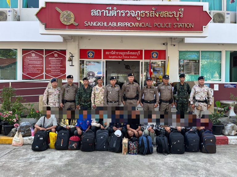 ทะลักต่อเนื่อง !!! ตร.สังขละบุรี ตามรวบ 11 แรงงานต่างด้าวสัญชาติ เมียนมาร์ หลบซ่อนในป่ายางเตรียมเข้าพื้นชั้นใน