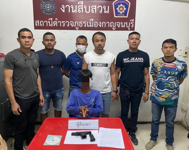สืบกาญจน์ รวบ 2 โจ๋มือปืนโหดยิงคู่อริส่งท้ายวันไหลสงกรานต์ ดับกลางถนน 1 เจ็บ 1