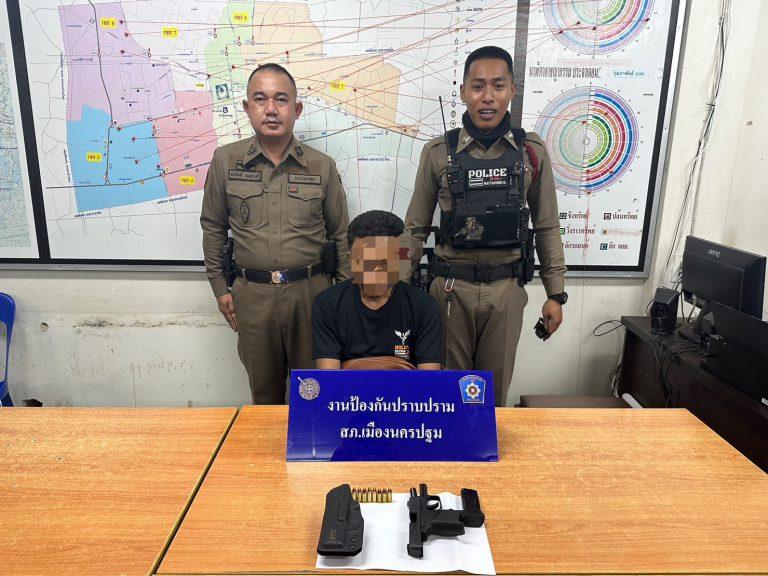 ตำรวจเมืองนครปฐมรวบหนุ่มวัย 44 ปีพร้อมอาวุธปืน