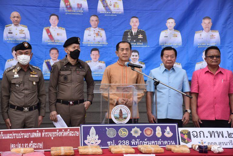 ศรีสะเกษโชว์ผลการจับกุมเครือข่ายคดียาเสพติดตามยุทธการ”พิฆาตทรชนคนค้ายาอีสานใต้ ภ.3 และ238พิทักษ์นครลำดวน จับกุมผู้ต้องหา 404 คน ยึดของกลางยาบ้า 240,480 เม็ด และทรัพย์สินนักค้ามูลค่าประมาณ 2,335,000 บาท