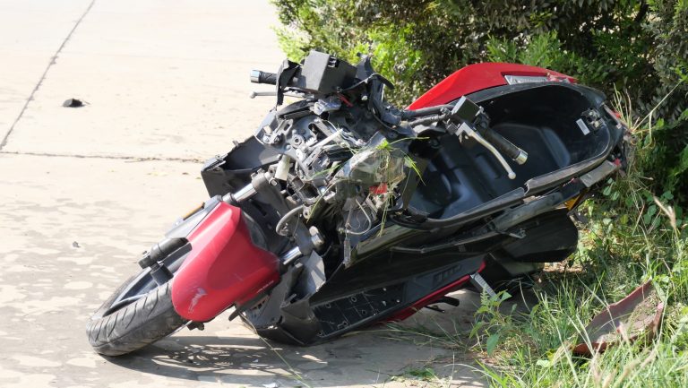 หนุ่มสาว ซิ่งจักรยานยนต์ฮอนด้าฟอร์ซ่า 350 ซีซี. พุ่งชนฟุตบาตรริมถนน