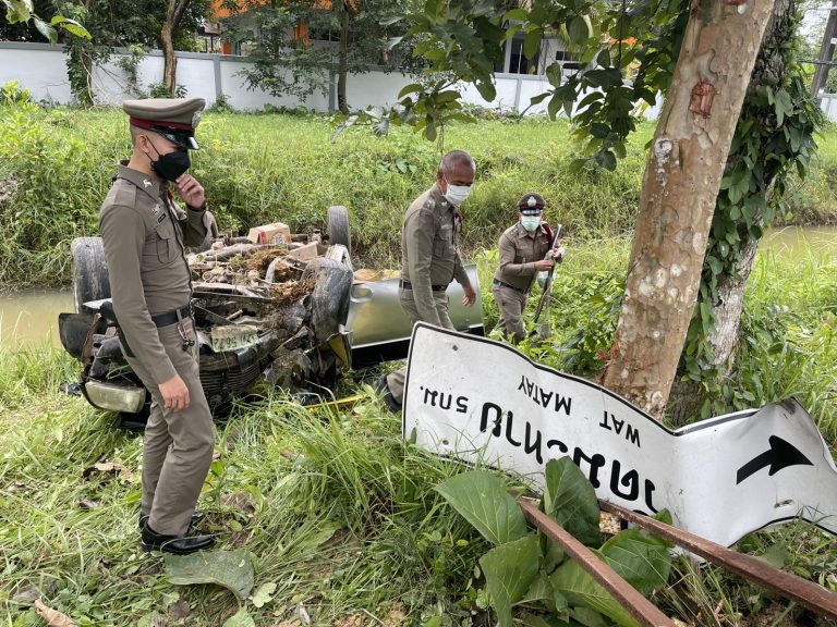 ราชบุรี – กระบะเสียหลักอัดเก๋ง อดีตส.ส.ราชบุรี พรรคประชาธิปัตย์หวิดดับ