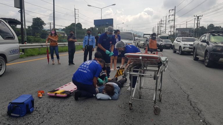 สระบุรี หนุ่มโคราชชื้อบิกไบล์มาได้ 1 วัน พาแฟนสาวขับกลับโคราชหวังนำรถไปให้หลวงพ่อที่บ้านเจิมเอาฤกษ์ถูกรถทัวร์ตัดหน้า รถคว่ำแฟนสาวสลบนอนกลางถนน