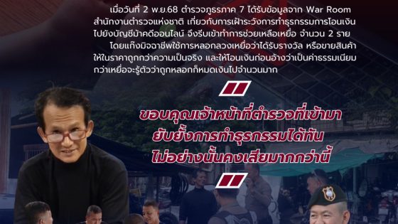 ตำรวจหัวหิน ! ให้การช่วยเหลือประชาชน หลังได้รับข้อมูลจาก วอลรูม สำนักงานตำรวจแห่งชาติ เกี่ยวกับการเฝ้าระวัง การทำธุรกรรมการโอนเงินไปยังบัญชีม้าคดีออนไลน์