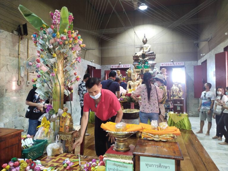 เทศกาลสงกรานต์นักท่องเที่ยวเข้ากราบไหว้หลวงพ่อปากแดง ขอพร โชคลาภ หน้าที่การงานพร้อมส่องหาเลขเด็ด