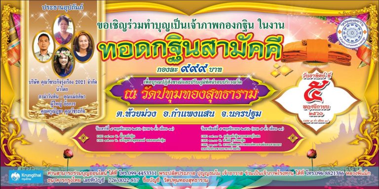 นครปฐม”เชิญญาติโยมร่วมเป็นเจ้าภาพทอดกฐินสามัคคี ณ วัดปทุมทองสุทธาราม