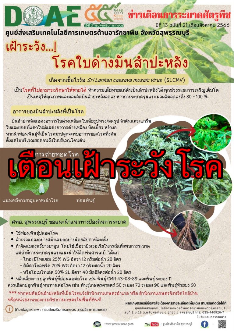 เกษตร”เตือนเฝ้าระวังโรคใบด่างมันสำปะหลัง