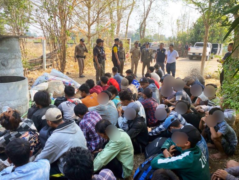ตำรวจเมืองกาญจนบุรี นำกำลังบุกบ้านร้างรวบ 123 แรงงานต่างด้าวหลบหนีเข้าเมืองเตรียมรอเคลื่อนย้าย