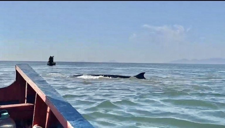 เจ้าหน้าที่และหน่วยงานที่รับผิดชอบฝั่งจังหวัดตราด ออกตรวจสอบพบวาฬขนาดใหญ่หลงทาง