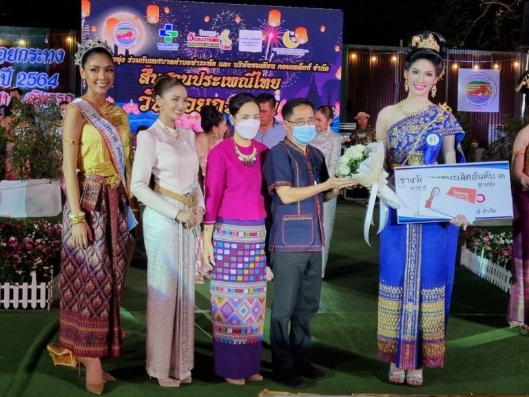 น้องพลอย สาวงามจากรั้วธรรมศาสตร์ คว้าตำแหน่งนางนพมาศ งานสืบสานประเพณีลอยกระทง วัดชายทุ่ง จ.สุพรรณบุรี
