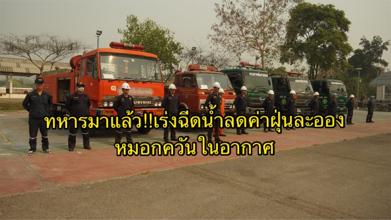 อำเภอฝาง!!ทหารเร่งฉีดนำ้ลดค่าฝ่นละอองและควันในอากาศ”