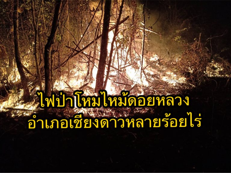 เกิดไฟไหม้ป่าดอยหลวง!!ตำบลเชียงดาวนับร้อยไร่กลุ่มควันกระจายเต็มพื้นที่”เจ้าหน้าที่เร่งระดมดับไฟป่า”
