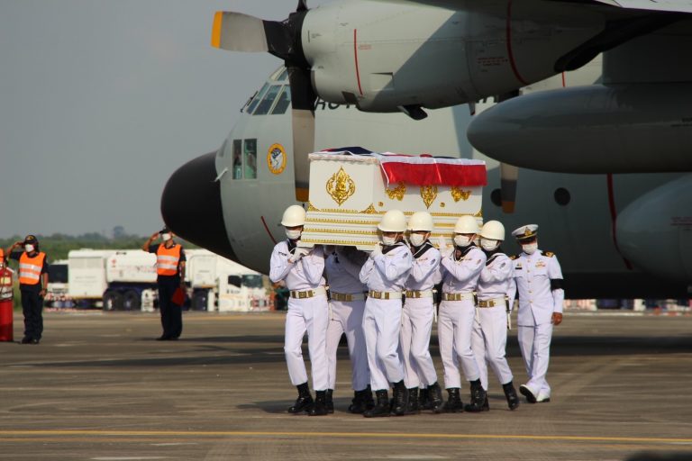 กองทัพเรือจัดพิธีรับศพอย่างสมเกียรติ 6 กำลังพล เหตุเรือหลวงสุโขทัยอับปาง