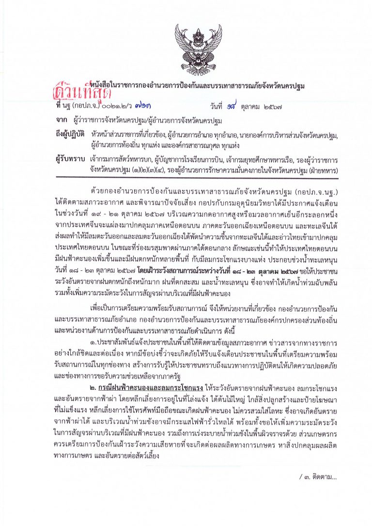 แจ้งเตือนประชาชนระวังอันตรายจากฝนตกหนัก และน้ำทะเลหนุน ระหว่างวันที่ 18-23 ต.ค.2567