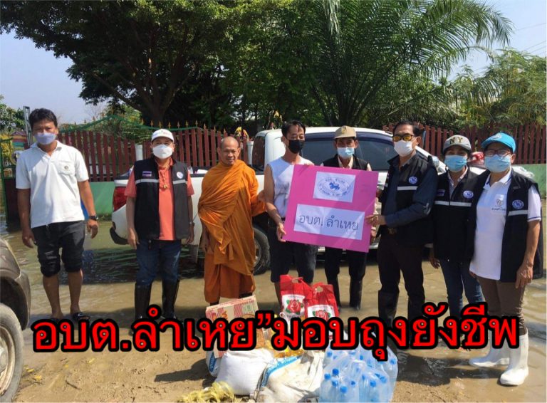 อบต.ลำเหยพร้อมทีมงานลงพื้นที่แจกถุงยังชีพให้ประชาชนที่ประสบปัญหานำ้ท่วมขัง