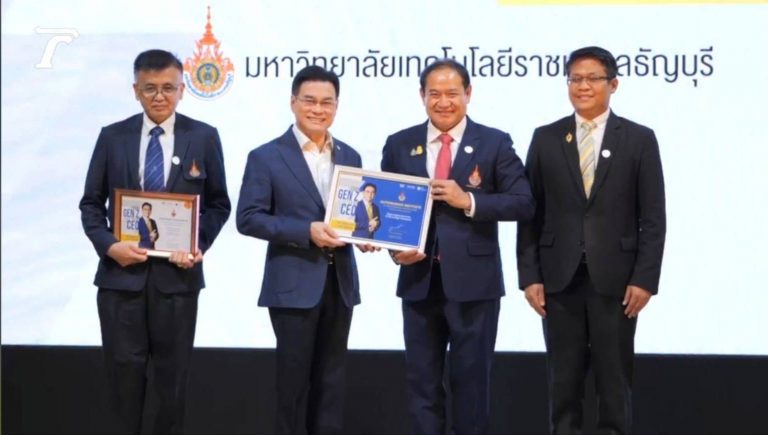 รศ.ดร.สมหมาย ผิวสอาด อธิการบดีมหาวิทยาลัยเทคโนโลยีราชมงคลธัญบุรี เข้ารับรางวัลสถาบันการศึกษาที่ส่งเสริมการสร้างผู้ประกอบการรุ่นใหม่ดีเด่น และรางวัลบุคลากรดีเด่น