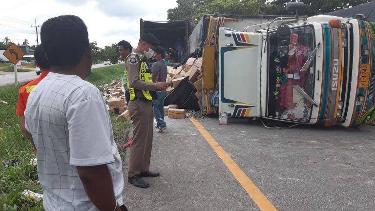 ประจวบฯรถบรรทุกแป้งมันพลิกควำ่”ถนนเพชรเกษม