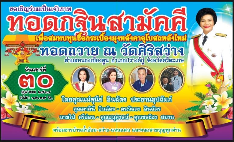 ศรีสะเกษ !! ขอเชิญชวนร่วมทอดถวายกฐินสามัคคีประจำปี 2564 ซื้อกระเบื้องมุงหลังคาอุโบสถหลังใหม่วัดศิริสว่าง
